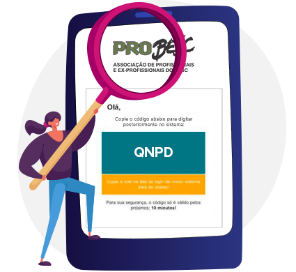 Confirme se o código foi recebido no local escolhido (via e-mail, SMS ou Whatsapp).