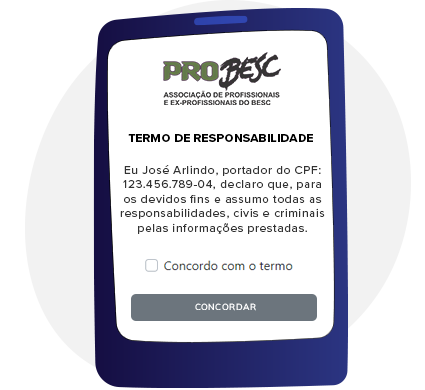 Leia o termo de responsabilidade e, ao fim da tela, clique sobre concordar para prosseguir.
